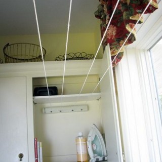 When it comes to laundry storage solutions for keeping laundry rooms tidy and organized, there are so many options ranging from rolling caddy in between the washer and dryer, adding a pull out ironing board in the laundry cabinet to repurposing a crib spring as a drying rack and mounting brackets on the corner wall…